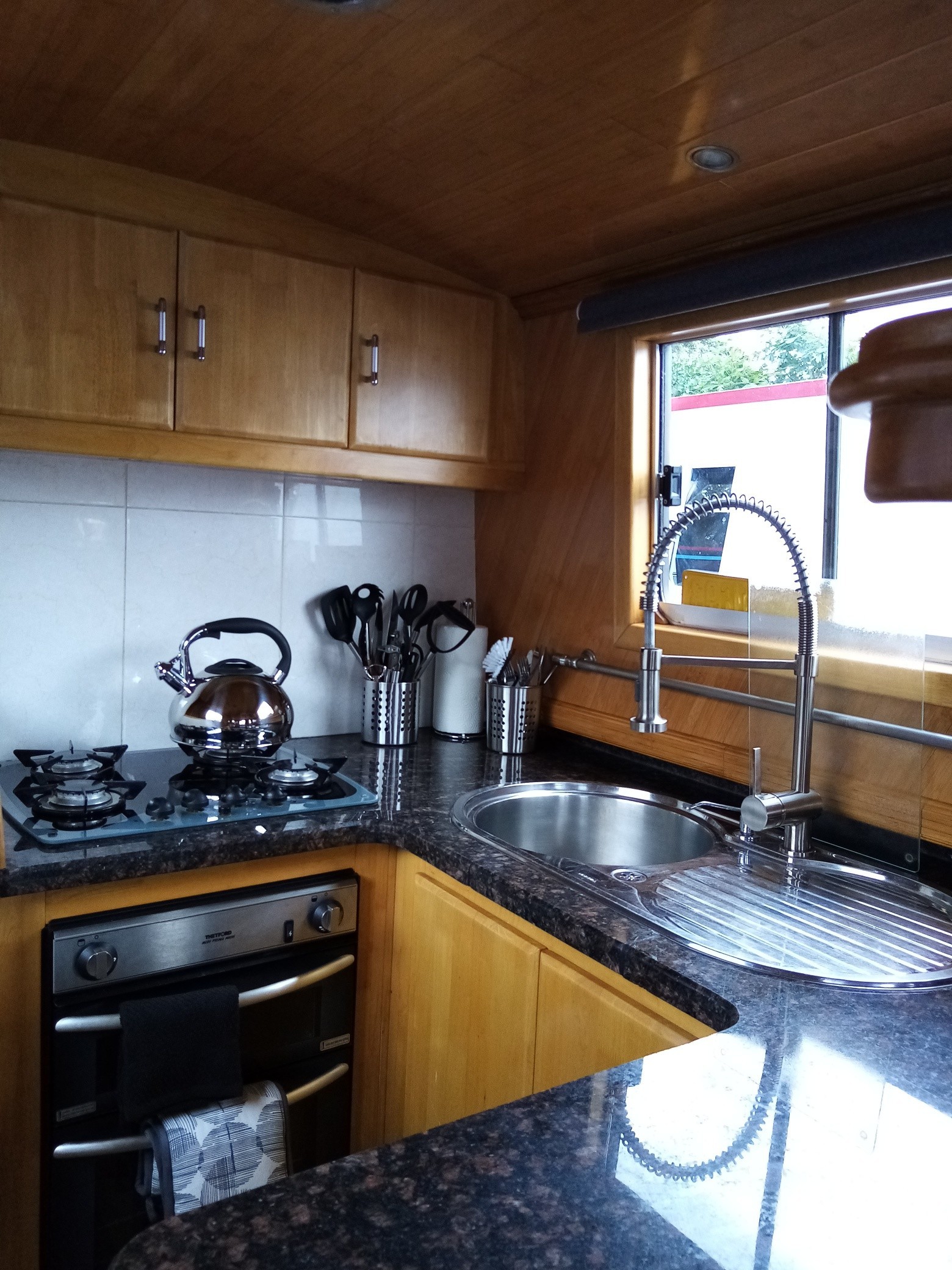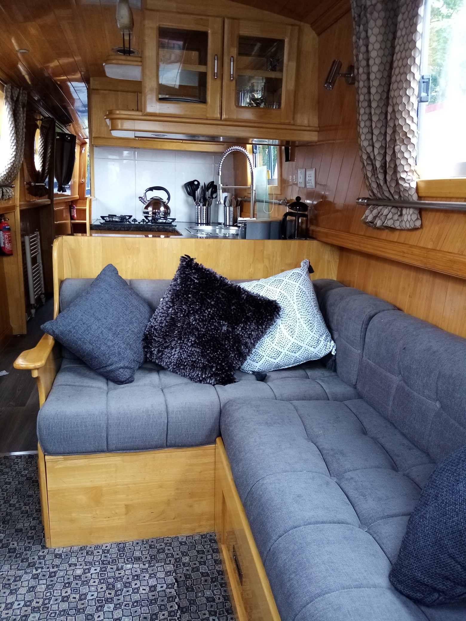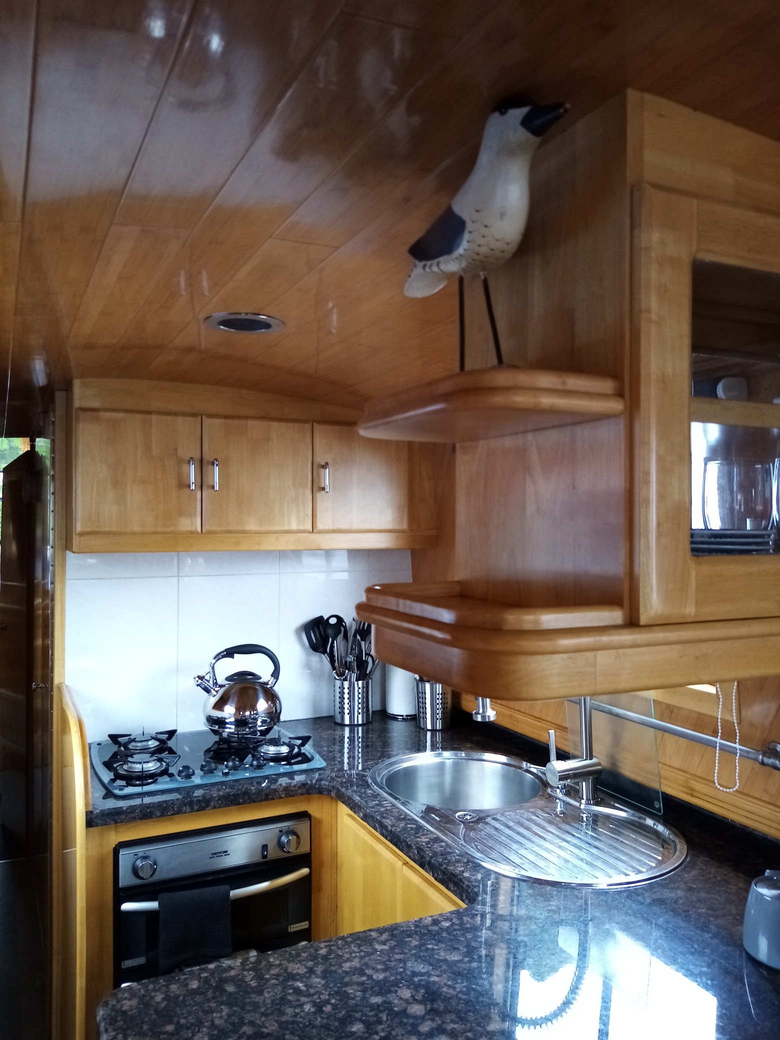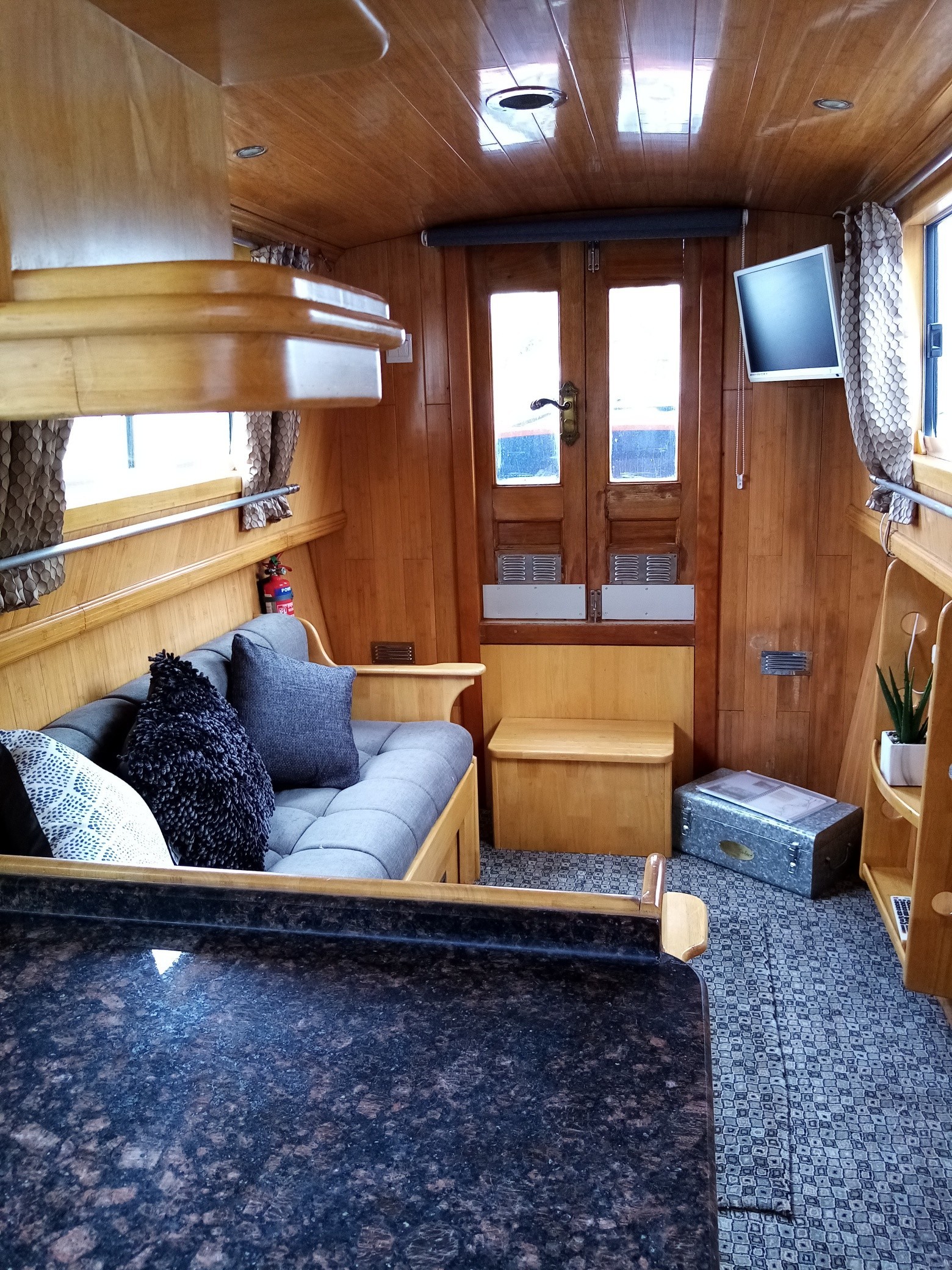 Dolly Mixture is 43ft long and has a 38hp diesel engine. Her interior is lined with quality bamboo finished to a high gloss, giving her a light and airy feel. She sleeps up to 4, in two 'narrow boat sized' double beds.